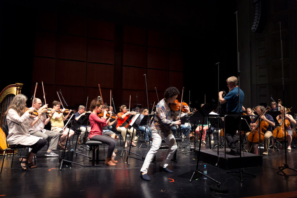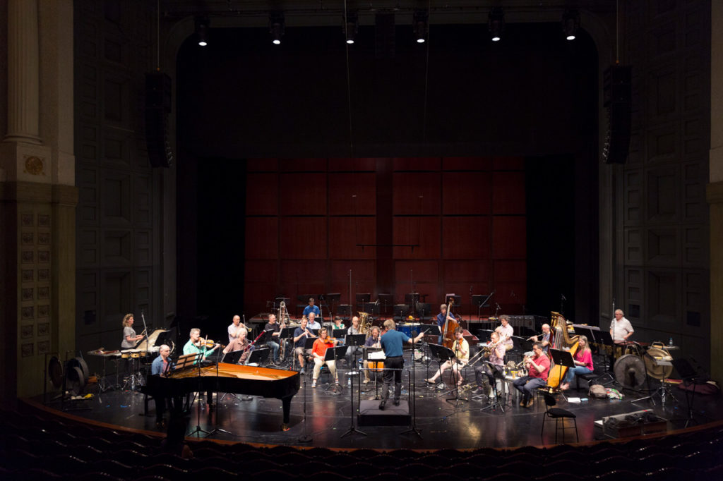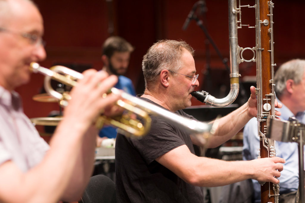 Rehearsing Elliott Carter's Instances with David Robertson as seen from the brass section.